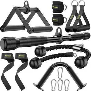 Cable Attachments for Gym, LAT Pulldown & Cable Machine Attachment Set: V-Shaped Bar, Rotating Straight Bar, V Rotation Handle, Nylon Tricep Rope, Ankle Straps & Handles, Home Gym