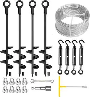 30" Ground Anchors Shed Anchors Kit with 3/16" 75FT Galvanized Cable & M6 304 Stainless Steel Turnbuckles, Heavy Duty Earth Anchors for Sheds Trees Trampoline Greenhouse Swing Set Tent, 6Pack Black