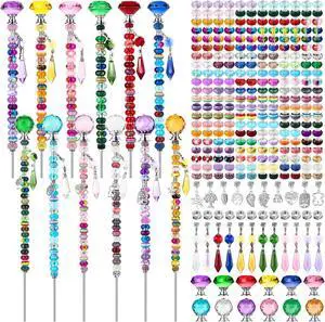 310Pcs DIY Fairy Wand Beaded Garden Stakes Kit, Fairy Wands Kit with Sparkling Crystal Pendants, Suitable for Different Holidays Garden Stakes Decorative Outdoor Beadable Items(10&12IN)
