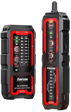828NPro Network Cable Tester & Wire Tracker, RJ45/ RJ11 Cable Tr, LAN/Ethernet/Telephone Cable Continuity Tester, Built-in Rechargeable Battery