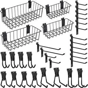 35-Piece Metal Slatwall Accessories Set for Garage Storage, Includes Wire Baskets, Heavy-Duty Hooks, Shelves & Bins, Fits Standard Slatwall Panels