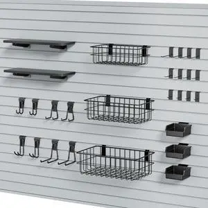 35Pcs Slatwall Accessories Kit, with Slatwall Hooks, Baskets, Shelves, Bins, Heavy Duty Slat Wall Accessory for Garage Organization, Workshop & Utility Room