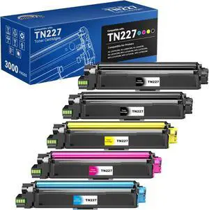 TN227 tn-227bk/c/m/y high Yield Toner Cartridge 5 Pack(with chip) Compatible Replacement for Brother tn227 tn227bk tn223 Toner for HL-L3270CDW MFC-L3770CDW MFC-L3710CW HL-L3290CDW MFC-L3750CDW Prints