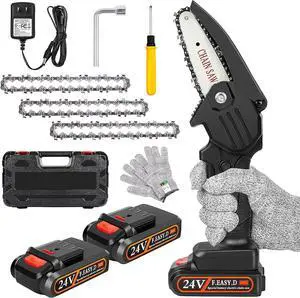 Mini Chainsaw Cordless Upgrade with 3 Chain 24V Strong Power 2 Batteries and Charger, Portable Handheld Battery Chainsaw, Small One-Handed for Gardening Pruning, Tree Trimming