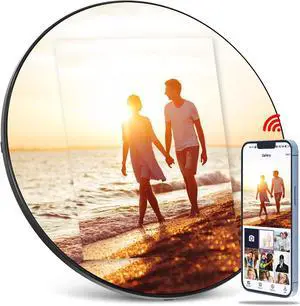 Digital Mirror Picture Frame, Touch Screen Smart WiFi Round Photo Frame Electronic, 32GB Storage, Share Photos and Video with App, Circle Vanity Mirror for Desk, Wall, Room Decor