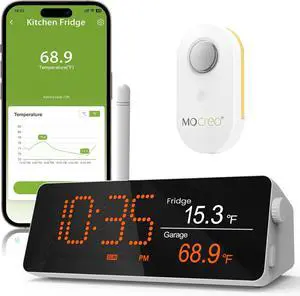 WiFi Remote Refrigerator Thermometer, 1/3 Mile Long Range Freezer Alarm, IP66 Waterproof, App Email Alert, with Digital Monitor Hub, 1 Smart Wireless Temperature Sensor for Kitchen, Fridge, RV