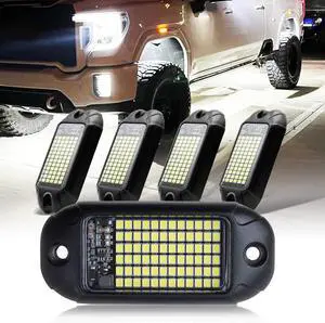4Pods Pure White 72 LEDs SMD Chips 72w High Power Rock Lights Super Bright White Offroad Car Boat Underglow Lights IP68 Waterproof for Truck SUV UTV ATV RZR