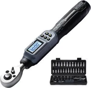 Digital Torque Wrench, 1.1-22.1 Ft-lbs/1.5-30 Nm, 1/4'' Drive Inch Pound Torque Wrench with Buzzer & LED Indicator, Electronic Wrench Set with Bits & Sockets for Gunsmithing Bike Motorcycle