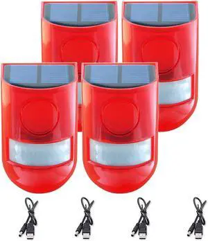 Solar Sound & Light Alarm Outdoor Motion Sensor 129db Siren Sound Alert & 6LEDs Flash Warning Security Alarm System for Farm,Villa,Home,Yard,Barn 4 Pack