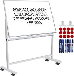 Dry Erase Whiteboard Easel on Wheels - TANKEE 48" x 32" Large Double Sided Mobile Whiteboard, Reversible Magnetic Rolling White Board for Home Office Classroom, Flip Chart Holders and Paper Pad