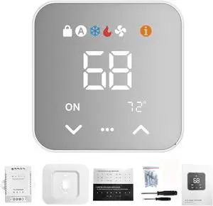WiFi Smart Thermostat for House with C-Wire Adapter, Programmable Thermostat Compatible with Alexa and Google Assistant,Remote Control Tuya/Smart Life, Energy Saving, C-Wire Require