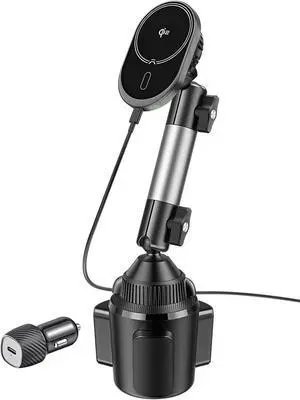 for Magsafe Car Mount Charger, QI2 15W Wireless Fast Charging Cup Holder Phone Charger - Dual Cooling System, Aluminum Alloy Tri-Pivot Arm, 18 N54 Sg Magnets for iPhone 17/16/15/14/13/12 Only