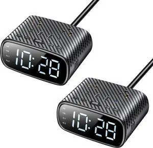 2PCS Alarm Clock with 2 USB-C, 2 USB-A Chargers Power Strip 2 Outlets - Screen LED Dimmable Digital Clock with Snooze Function - Dual Alarm for Bedside Nightstand