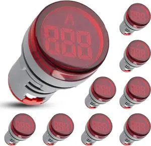 Digital Led Display Indicator Ammeter, 0-100A Max AC380 Current Meter and 220V - Gauge Meter, Tester Amp Monitor - AD101-22AM Model, Circle Panel, Red (10 Pack)