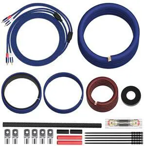 1/0 Gauge Power Amp Kit Up to 6500 Watts Premium Elite Pro Flexible RCA Speakers Wires , 250A + 300A Fuse Included , Complete Blue DIY Hobbyist AWG Amplifier Installation Wiring