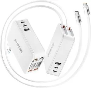 65W Retractable Wall Charger with Dual USB C Cables, 5-Port GaN Charger Block, Compact Foldable Power Adapter, Fast Charging for MacBook Pro/Air, XPS, ThinkPad, ZenBook, iPhone, iPad