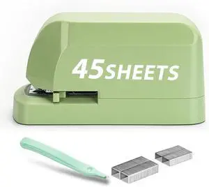 Heavy Duty Electric Stapler Value Pack, 45 Sheet Capacity, Includes 1500 Staples & Staple Remover, No-Jam, Faster Stapling, Automatic Stapler Desktop,AC Adapter Powered (Saga Green)
