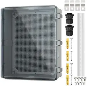 Electrical Junction Box, Outdoor Water Resistant Nema Enclosure, Ventilated ABS Plastic WiFi Project Box with Internal Mounting Panel & Hinged Cover 18.1" Lx 12.6" Wx 6.3" H