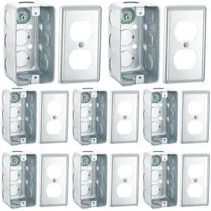8 Set 4 x 2 Inch Electrical Junction Box with Cover Square Plenum Box Galvanized Steel Metal Outlet Boxes, Ten 1/2'' Knockouts, 1-7/8" Deep, 13 Cu. in. Capacity (Duplex Receptacle Cover)