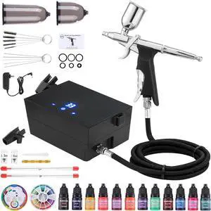 40PSI Airbrush Kit with Air Compressor, Portable Air Brush Kit with 10 AirBrush Paint & 3 Quick-Release Nozzle Sets Dual-Action Gravity Feed Airbrush Kit for Nail Art Painting Makeup Cake
