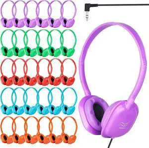 Classroom Headphone with Microphone (5 Pack) - Kids Wired Earphones with Mic for School Students K-12 & Teachers, Soft Swivel On Ear Pads- Perfect for E-Learning, Meetings, Calls -(Colorful)