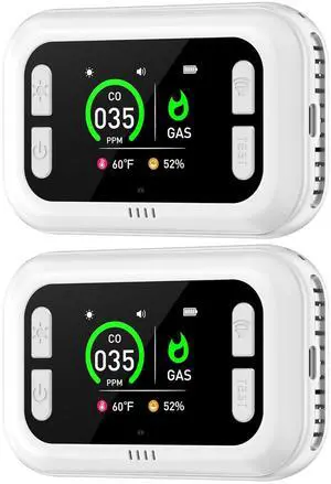 Plug in 5in1 Carbon Monoxide Detector & Combustible Natural Gas Combination Builti-in Backup 1000mAh Battery & HD Screen [CO Gas Temp Humidity Sensors] for Home Kitchen Hotel (2Pack, White)