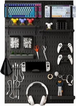 Peg Board Wall Organizer for Gaming Setup, Pegboard with Adhesives & Screw Mounts, Includes Peg Board Accessories for Gaming Accessories, Tech Storage & Office Organization (Black, 33×22)
