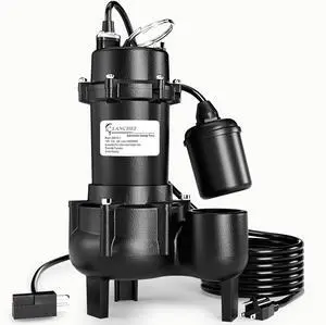 1HP 6600 GPH Submersible Sewage Pump, Heavy Duty Cast Iron Effluent Pump with Automatic Tethered Float Switch, Sump Pump for Sump Basin, Basement, Residential, 2" NPT Discharge
