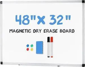 Magnetic White Board Kit for Wall 48" x 32", Dry Erase Board with 1 Dry Eraser & 2 Multicolor Markers & 4 Magnetic Pins, Silver Reinforced Aluminum Frame for Home, School, Office