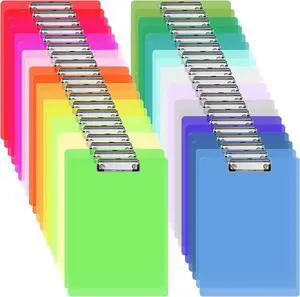 40 Pcs Plastic Clipboards Bulk 20 Assorted Colors 12.5 x 9 In Clear Colored Clip Board Standard A4 Letter Size Low Profile Clipboard Portable for Classroom Office Supplies Students Back to School