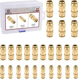 26pcs Quick Connect Brass DOT Air Line Fittings Straight Union 1/4 3/8 1/2 Tube Push to Connect Fittings Air Suspension Fittings Straight Air Brake Union Push Lock Pneumatic Air Hose Fitting