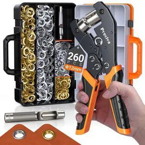 Grommets Tool Kit with 1/2 inch Grommets and Carrying Case,Eyelet Punch Pliers Set, Precision Dies for Canvas, Leather, Tarps, Fabric, and DIY Repairs 130 PCS Each in Silver and Gold