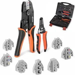 Ratcheting Wire Crimper Set, 9-Piece with Quick-Change Dies, AWG 22-2 (0.5-35mm²), for Heat Shrink, Open Barrel, Insulated & Non-Insulated Terminals, Ferrules and Solar Connectors