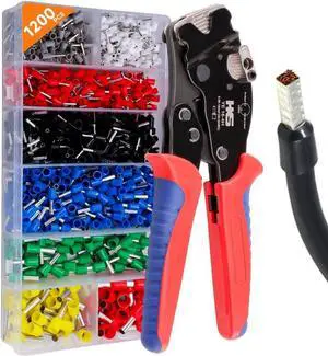 Ferrule Crimping Tool Kit, Self-Adjustable Ratchet Crimper for AWG 28-5 Ferrules - Includes 1275PCS Hexagonal Double & Single Wire Connectors