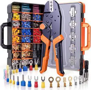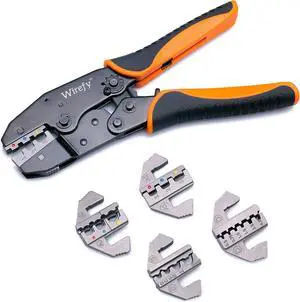 Wire Crimping Tool Kit | Crimpers & 4 Slide in Dies | Ratcheting Wire Crimper Tool | Terminal Crimp Pliers | for Heat Shrink, Nylon, Non-Insulated, Insulated Connectors, Ferrule Terminals