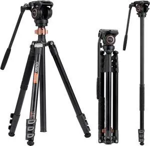 Cayer FP2450 Fluid Head Tripod, 75 inches Aluminium Video Tripod, 4-Section Compact Camera Tripod Monopod with Fluid Head for DSLR Camera, Camcorder, Load Capacity up to 13.2 Pounds