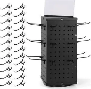 Rotating Pegboard Display Stand With 24 Hooks - Metal Spinning Peg Board Displays, Stands for Retail, Vendors, Selling & Shows - 4-Sided Craft Rack Organizer for Products, Accessories, Jewelry