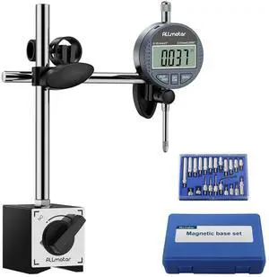 Digital Dial Indicator with Magnetic Base 70kg, 0-1 Inch/25.4mm Precision Measuring Tool Kit,22 Testing Tips for Lathe,3D Printer,Milling Machine Alignment & Car Repair Workshop Woodworking