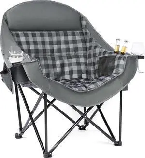 Oversized Camping Chairs for Adults - Heavy Duty Padded Outdoor Folding Lawn XL Camp Chair with Cup Holder Cooler Pockets for Outside Sports Beach Fishing Garden Portable Supports 500lbs, Grey