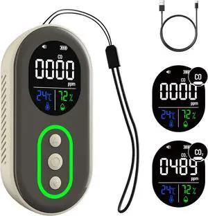 DS-399PRO Carbon Monoxide and Carbon Dioxide Detectors, 4-in-1 Portable CO2 & CO Detector with Audible & Visual Alarm, Rechargeable CO & CO2 Meter for Home, Travel, Camping, Car, 72H Standby