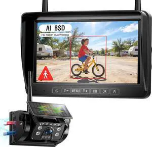 Magnetic Solar Wireless Backup Camera System, Portable 7" DVR Monitor with BSD 1 Min Install HD 1080P Rear View Camera Night Vision Rechargeable for SUV Truck Pickup RV Camper Tractor DTC701