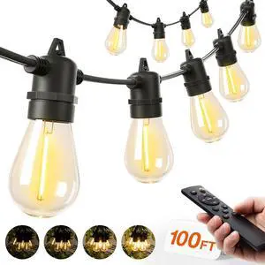 100FT LED Outdoor String Lights, Remote Dimmable Patio Lights with Timer & 3 Lighting Modes, 32 Shatterproof Edison Bulbs, Waterproof Connectable String Lights for Outside Backyard Porch Party
