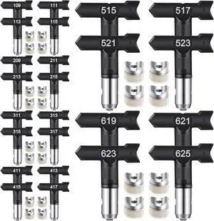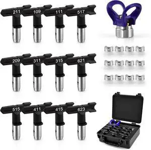 Airless Paint Spray Tip Set, 12 Pieces Reversible Spray Tips and 1 Nozzle Seat with a Storage Box, Airless Paint Spray Parts for Home Building(109,111,209,211,311,315,411,415,515,517,621,623)