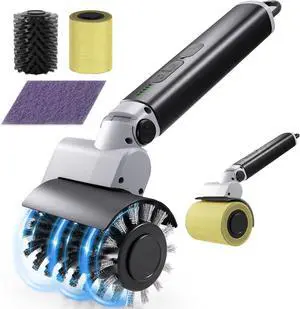 Electric Grill Brush 3-in-1 Kit Cordless BBQ Cleaner with Reinforced Safe Metal Bristles 2 Hours Runtime, Waterproof & Dishwasher Safe Removable Brushes for Deep Cleaning (Light Gray)