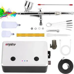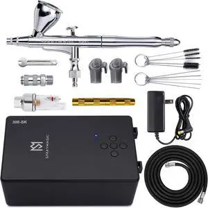 Airbrush Kit with Quiet Air Compressor,Portable 51psi Pressure,One-Button Easy Operation,Dual-Action,0.3mm Nozzle,Ideal for Models,Nail Art,Barber,Makeup,Cake Decoration,Beginners-Professionals