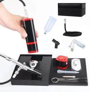 Cordless Airbrush kit with air Brush Holder Replaceable 2pcs Batteries Powered Portable handhold mini air Brush Compressor for Barber,Nail,Cake,Miniature,Model,Leather Art