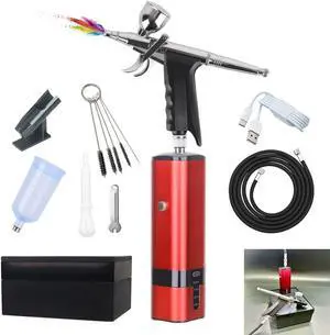 Portable Upgraded Dual-Action extra battery Airbrush kit with compressor-replaceable battery Cordless Air Brush Set for Leather furniture repair,Nail Art,Painting,Cake,Model,Tattoo,T-shirt