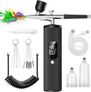 Cordless Airbrush Kit with Compressor, Dual-Action 0.3mm Airbrush Gun, 3 Adjustable Pressure Levels, Portable Rechargeable Air Brush Set for Beginners, Nail Art, Crafts & Small DIY Projects