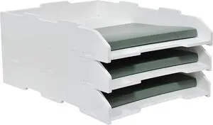 A3 Stackable Paper Tray, 3 Tier Desk File Organizer, Desktop Organizer for Office Supplies, File Storage, Letter Organizer /A3 Office File Folder,Home or Office School, White (Portrait-White-3-Tier)