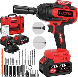 TIKTIK 850Nm Cordless Impact Wrench,1/2" Cordless Impact Gun w/ 2x 4.0Ah Battery,3300RPM Brushless Impact Wrench,640Ft-lbs High Torque Electric Impact Driver Set for Car/DIY Furniture/Lawn Mower